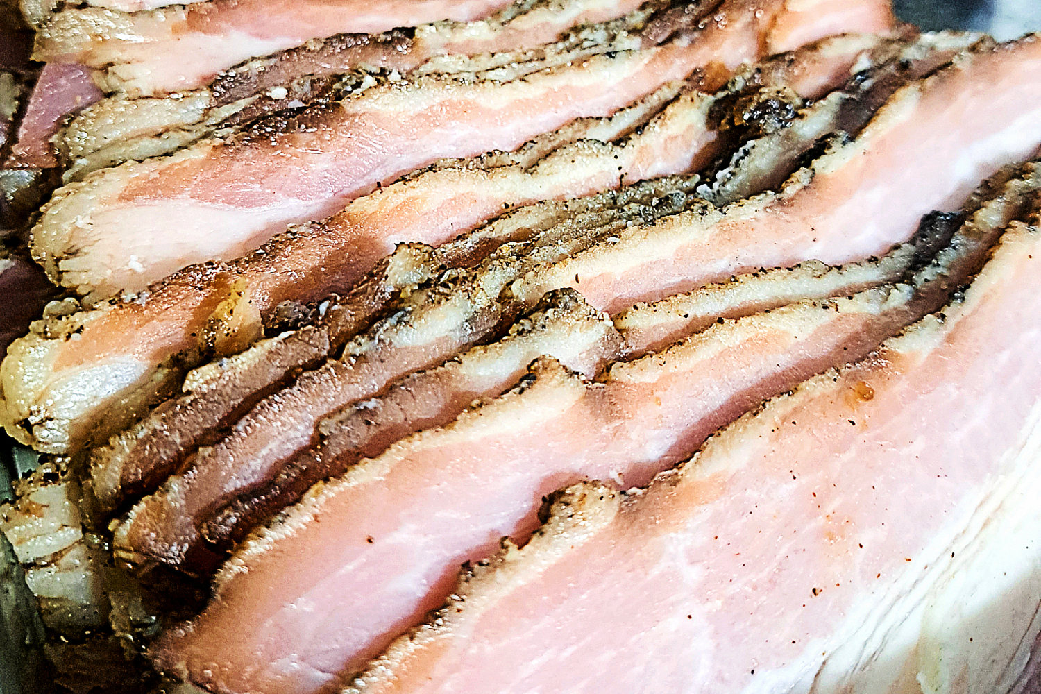 Thick-cut, premium pork belly that has been meticulously hot-smoked for a deep, authentic flavor. Perfect for gourmet sandwiches, pastas, and breakfast platters
