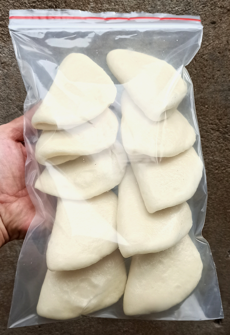 Open-face Bánh Bao shells. Ultra-soft, fluffy texture, perfect for custom savory fillings, tacos, or sweet sandwiches. Ready to steam.